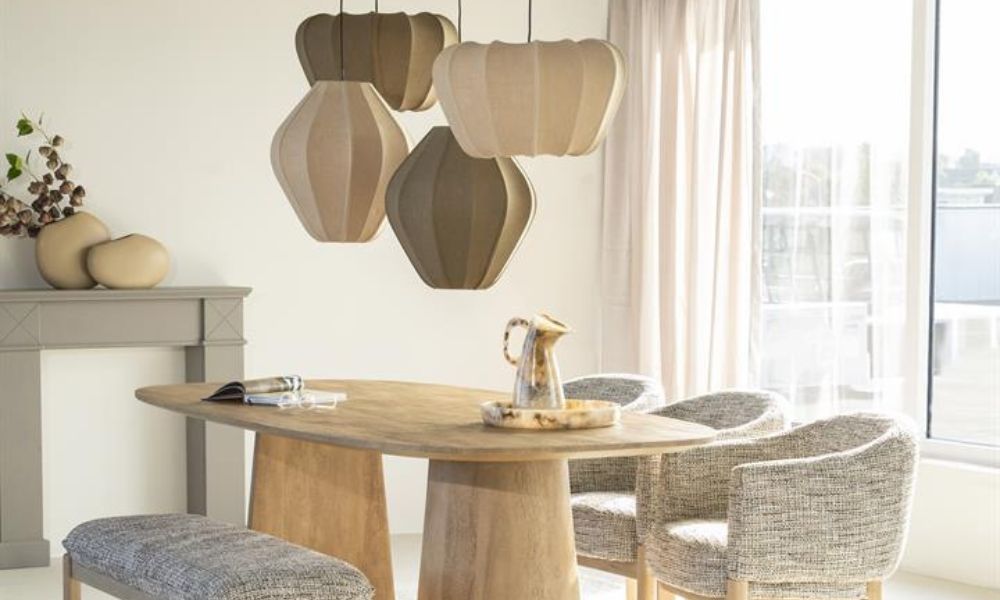 Voorjaar 2026 zet verlichting neer als sfeerobject. Niet alleen functioneel, maar echt onderdeel van je styling. Denk aan sculpturale hanglampen, tafellampen met bijzondere vormen en warm licht dat je ruimte zachter maakt. Ook indirect licht, zoals een lamp die tegen de muur schijnt of een zachte vloerlamp naast de bank, maakt een groot verschil.