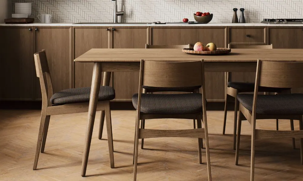 Slanke, inklapbare stoelen of modellen zonder armleuningen houden je eethoek luchtig en zorgen ervoor dat je de stoelen makkelijk onder de tafel kunt schuiven. Zo blijft de doorgang vrij en voelt de ruimte ruimer aan. Stapelbare krukjes of minimalistische designstoelen zijn ook een slimme optie voor een kleine eethoek.