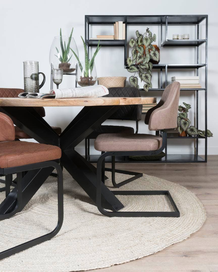 Naast lichte kleuren en optimale lichtinval is transparantie een middel om je kamer groter te laten lijken. Denk bijvoorbeeld aan een eetkamertafel, eetkamerstoelen en salontafels met een fijn maar toch stoer onderstel waar je doorheen kunt kijken. Kies voor industriële vitrinekasten in plaats van voor gesloten kasten. Gebruik een open boekenrek bijvoorbeeld als roomdevider. Daardoor creëer je aparte leefruimtes en je ‘muur’ dient meteen ook als opbergruimte.