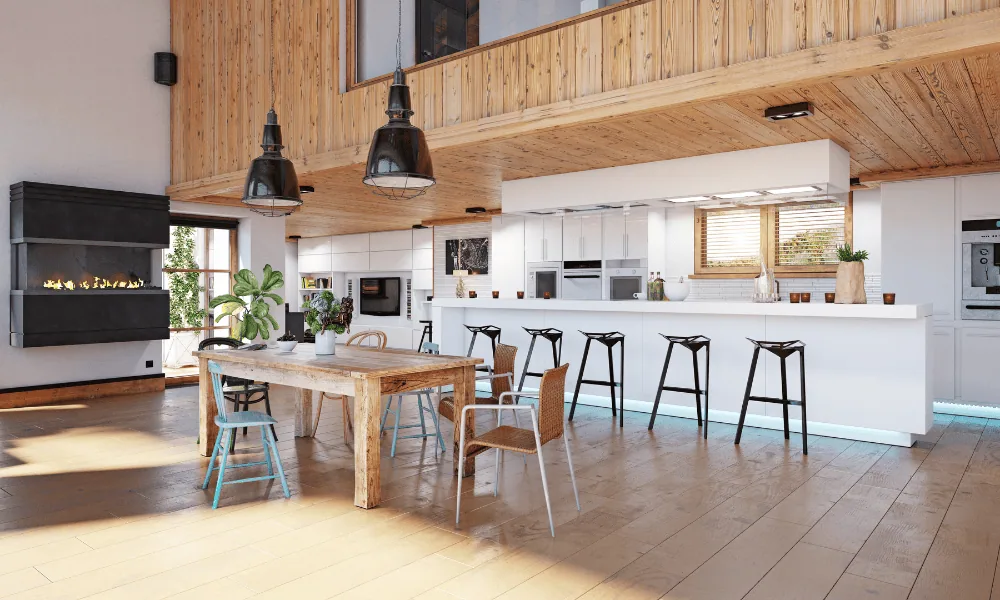 Een van de kenmerkende elementen van een landelijk interieur is het gebruik van natuurlijke materialen. Hout is het meest populaire materiaal, vooral in vloeren, meubels en balken. Kies voor houtsoorten met een robuuste en rustieke uitstraling, zoals eiken, grenen of teak. Combineer dit met andere natuurlijke materialen zoals steen, linnen en katoen voor een authentieke landelijke sfeer.