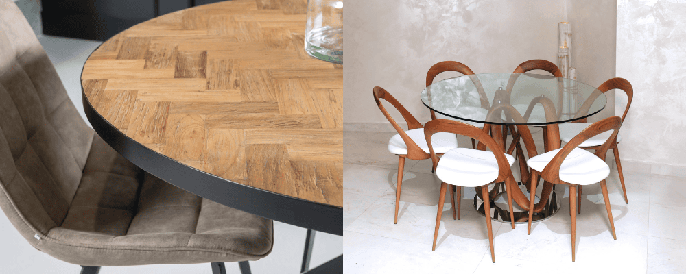 Naast de grootte is het materiaal en de stijl van de tafel ook van groot belang. Overweeg het gebruik van duurzame materialen zoals massief hout of metaal, afhankelijk van de stijl van je eetkamer. Bijvoorbeeld deze mangohouten eettafels