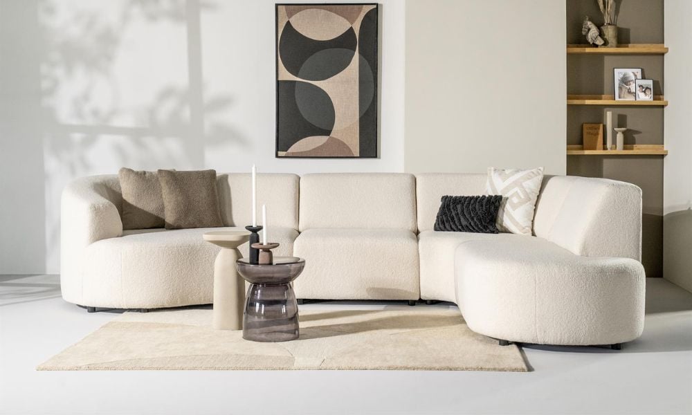 Een van de beste manieren om organische vormen in je interieur te brengen, is door meubels met vloeiende lijnen en zachte rondingen te kiezen. Denk aan een bank met afgeronde hoeken, zoals deze Denise bank. Of een organische eettafel met een golvend blad. Deze meubels bieden niet alleen comfort, maar maken je huis ook uitnodigend en rustig.