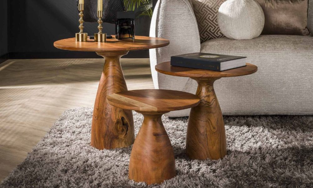 - Salontafels van acacia: Voeg een natuurlijke touch toe aan je zithoek met een robuuste acaciahouten salontafel.