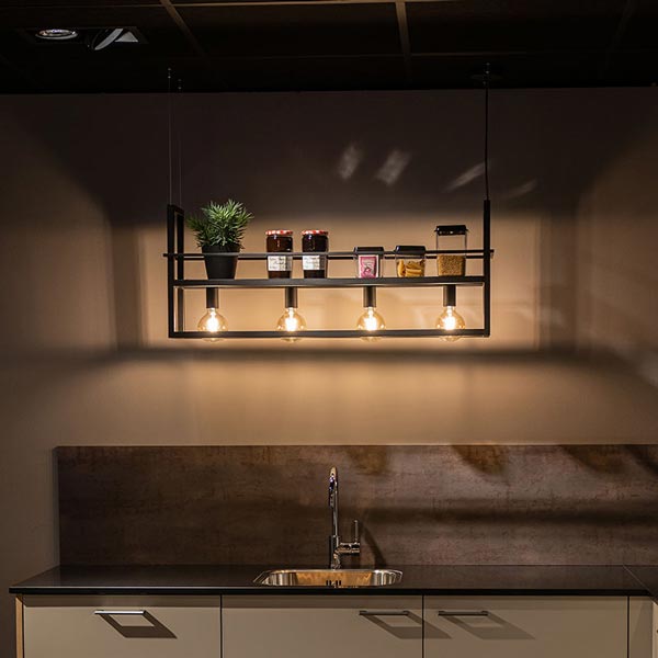 Zoals in het verlichtingsplan van je woonkamer, ga je ook hier eerst voor basisverlichting zorgen. Spotjes in het plafond van de keuken zorgen voor functioneel licht. Sfeerlicht is nuttig als je bijvoorbeeld vaak in de keuken eet.