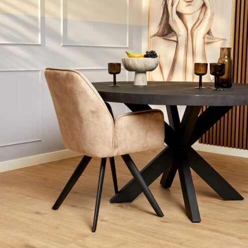Beige straalt rust en zachtheid uit, wat ideaal is voor een gezellige eetruimte. Kies voor gestoffeerde modellen in stoffen zoals velvet, ribstof, teddy of microvezel voor extra comfort. Een onderstel van hout, zwarte poten of walnoot geeft je stoel karakter. Modellen met armleuning bieden meer zitcomfort, terwijl draaibare stoelen extra praktisch zijn aan tafel. Met de juiste combinatie van stof en onderstel maak je de eethoek helemaal af.