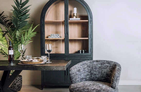 Heb je juist een aparte eetkamer? Dan heb je meer vrijheid om te spelen met kleur, vorm en opstelling. Een royale tafel of opvallende eetkamerfauteuil komen hier goed tot hun recht. Je kunt kiezen voor een wandkast eetkamer of vitrinekast als blikvanger, of juist een bankje tegen de muur voor een gezellige, informele sfeer. Vergeet ook hier de verlichting en accessoires niet, ze maken de ruimte af en brengen warmte in het geheel.