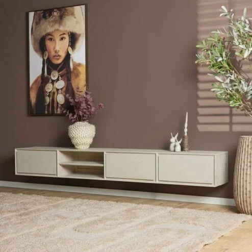 Japandi kasten passen makkelijk bij andere meubels. Vooral als ze dezelfde houtsoort of kleurenpalet delen. Combineer bijvoorbeeld een kast van eikenhout met een linnen bank of een keramische tafellamp.