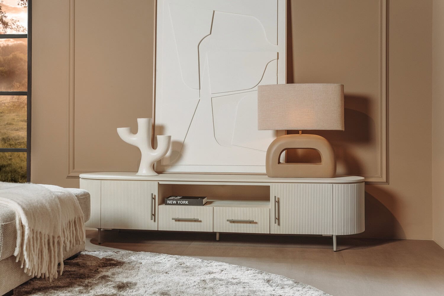 Corbetta TV meubel wit/grijs mdf met betonlook finish 200cm