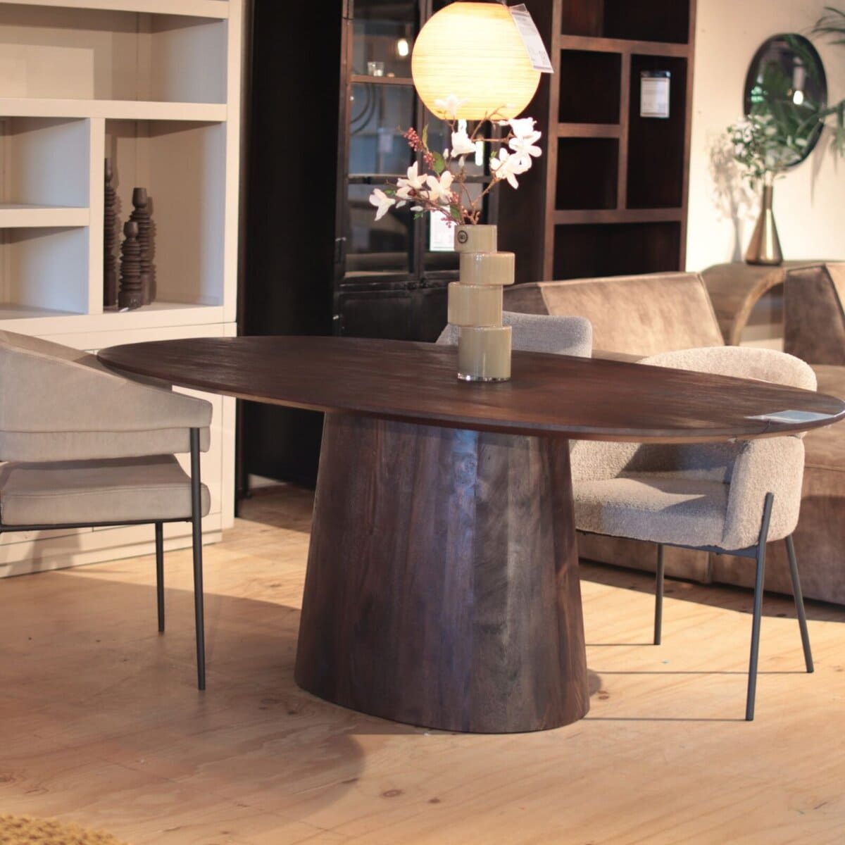 Onze ovalen eettafel Aron 200cm bij 110cm in de kleur bruin is uitgevoerd in mangohout, geeft een exotische uitstraling aan je kamer. De ronde lijnen en de massieve structuur van het onderstel maken deze tafel tot een uniek stuk. Ook beschikbaar in zwart en meerdere ovale versies. Lees verder voor meer informatie.