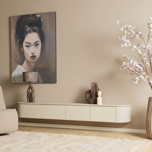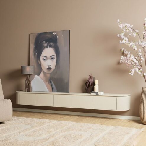 Het Evi tv-meubel combineert een luchtig, zwevend design met de warme uitstraling van mangohout. Dankzij de afgeronde hoeken oogt het meubel vriendelijk en modern, terwijl de deurfronten jouw apparatuur en accessoires netjes uit het zicht houden. Evi wordt gemonteerd geleverd en is beschikbaar in meerdere lengtes, van 120 tot 280 cm, en in vijf stijlvolle kleuren. Liever niet zwevend? De meegeleverde pootjes maken van Evi in no-time een staand model van 46cm hoog. Zo past dit meubel moeiteloos in vrijwel elke woonkamer en woonstijl.