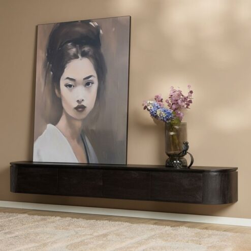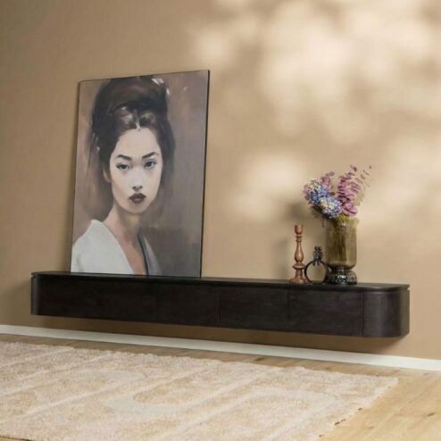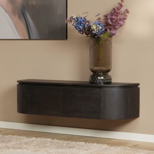 Evi Zwevend Tv meubel Zwart Mangohout 160cm