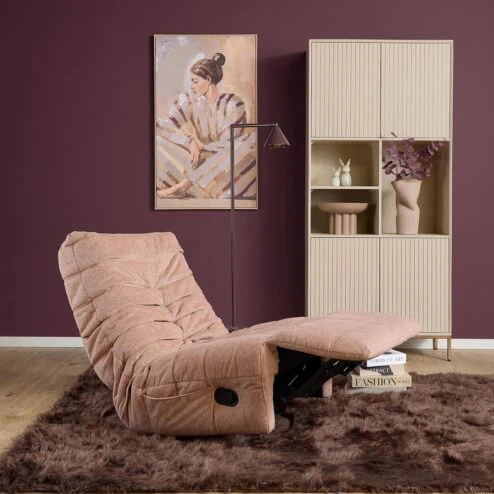 De Fien-serie combineert ultiem comfort met een stijlvolle, eigentijdse uitstraling. Deze relaxfauteuils zijn ontworpen om volledig tot rust te komen, dankzij de verstelbare rugleuning en het uitgekiende zitcomfort. Verkrijgbaar in vijf prachtige kleuren – naturel, beige, taupe, roze en grijs – past Fien moeiteloos in uiteenlopende interieurs. De zachte stoffen bekleding en het elegante silhouet geven de fauteuil een moderne, warme look. Of je nu ontspant met een boek of een filmavond houdt, Fien is jouw perfecte loungepartner.