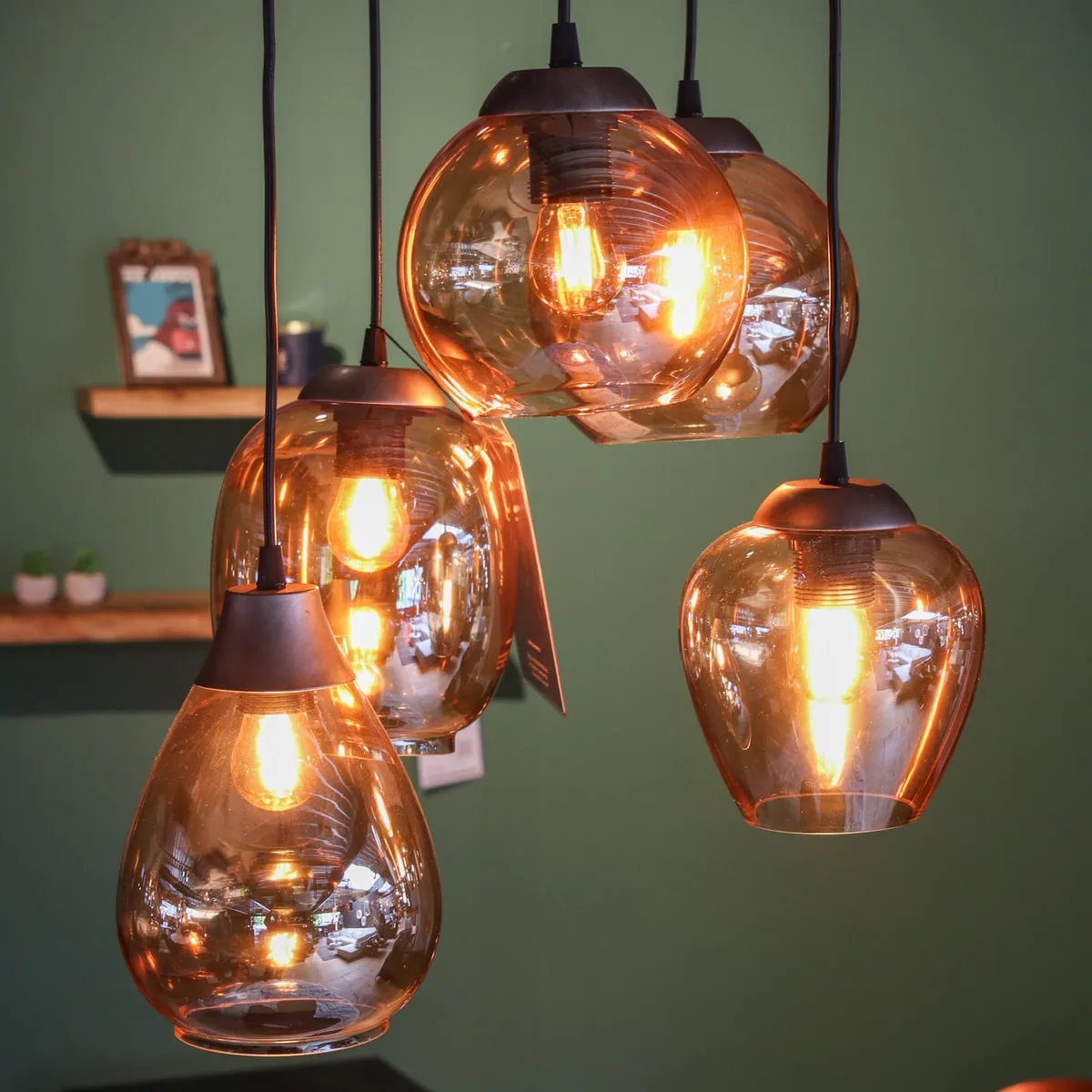 Glowy 5-lichts hanglamp amber getrapt