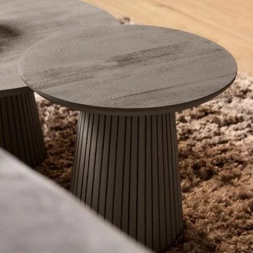 De Livia salontafel rond combineert eenvoud en stijl in een tijdloos design dat in elk interieur tot zijn recht komt. Verkrijgbaar in zowel naturel als taupe afwerking en in twee formaten (50 en 80 cm), biedt deze tafel flexibiliteit voor verschillende woonruimtes. Dankzij de ronde vorm oogt de tafel vriendelijk en toegankelijk, terwijl het mangohout zorgt voor warmte en karakter. Of je nu kiest voor een compacte variant of een ruimere tafel, de Livia voegt altijd een stijlvolle blikvanger toe aan jouw woonkamer.