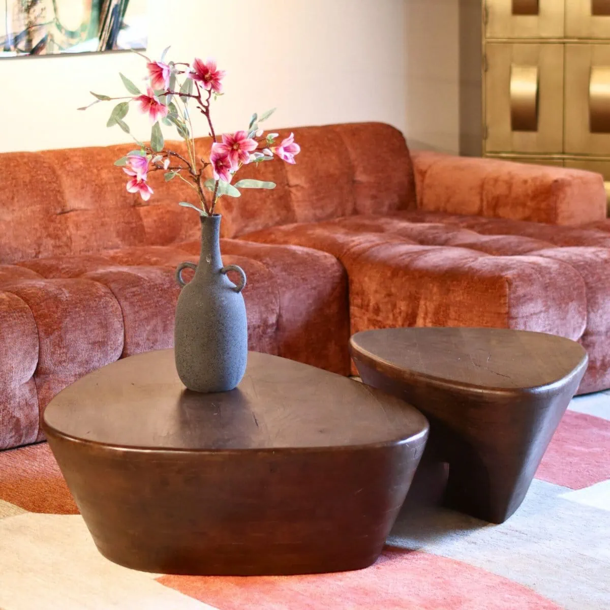 Onze Mila salontafel van 107 x 78 x 30 cm heeft wel heel bijzondere vormen. Neem daarbij nog het prachtige bruine mangohout en je krijgt een kunstwerk in huis. Ze bestaat ook in een andere afmeting, combineer deze twee tot een ware sculptuur. Ze is ook in zwart verkrijgbaar.
