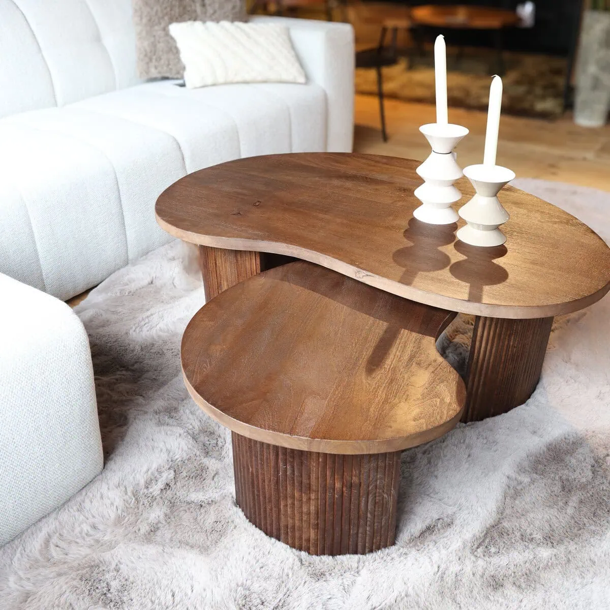Salontafel set van 2 Timon Espresso Mangohout 100cm