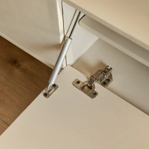 Let op: Dit artikel bevat natuurlijke oneffenheden op het hout, wat inherent is aan de afwerking van het meubel. De meubelen zijn niet ontworpen om een tv te dragen, en de bevestiging aan de muur is niet geschikt om dit gewicht te ondersteunen.